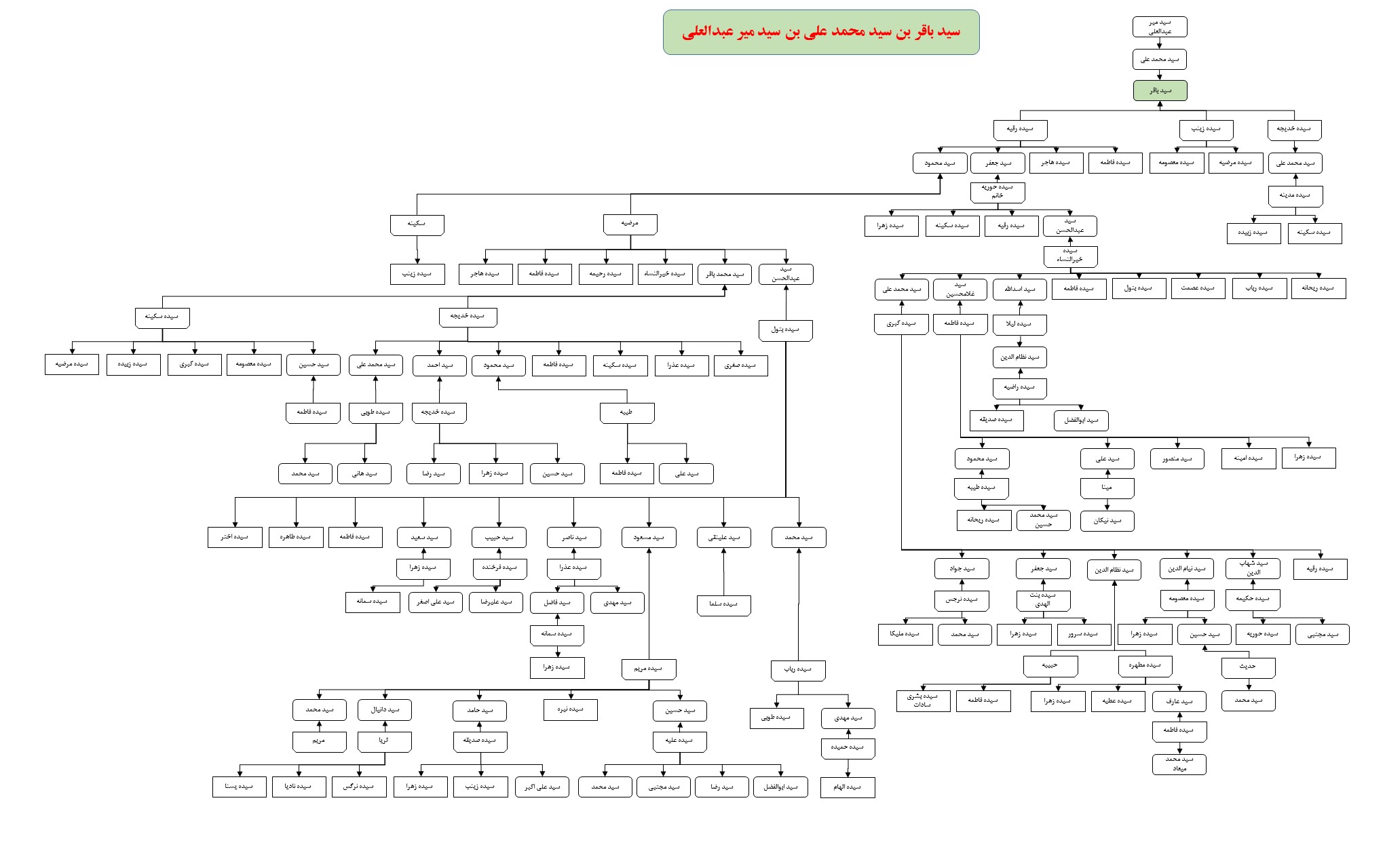 شجره نامه درختی فرزندان سید باقر بن سید محمد علی بن سید میرعبدالعلی